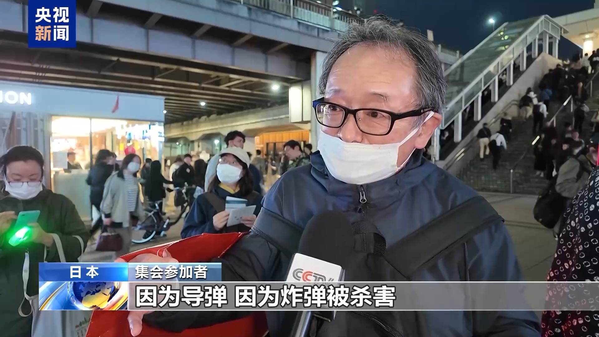 集會(huì)參加者:我們本應(yīng)對(duì)80多年前的那場(chǎng)戰(zhàn)爭(zhēng)進(jìn)行反省,但卻沒(méi)有做到,這絕對(duì)是不對(duì)的。如果有人因?yàn)槟切┪淦?,因?yàn)閷?dǎo)彈、因?yàn)檎◤棻粴⒑?,這種事情你能接受嗎?絕對(duì)不可能接受,根本無(wú)法接受。這種事情是絕對(duì)不能發(fā)生的,所以我堅(jiān)決反對(duì)。