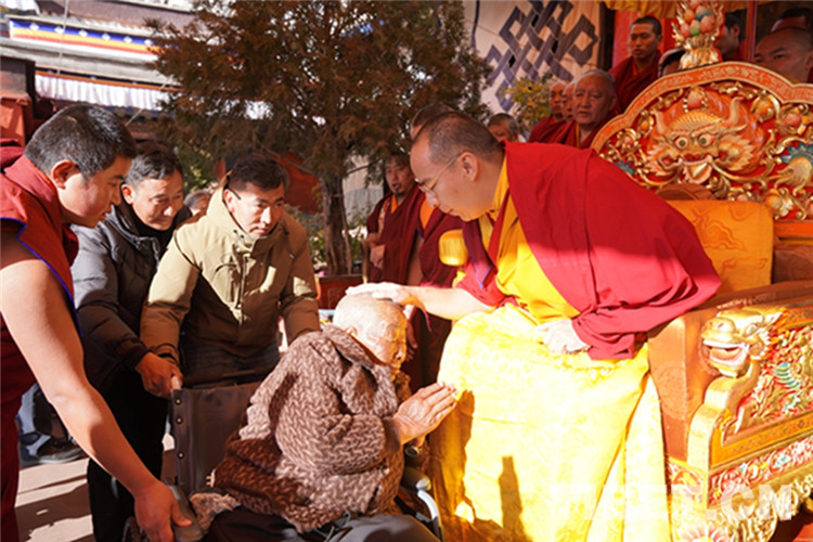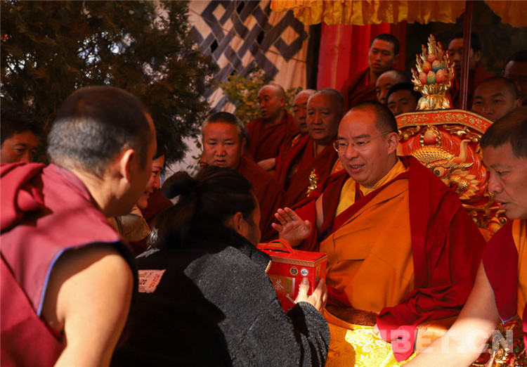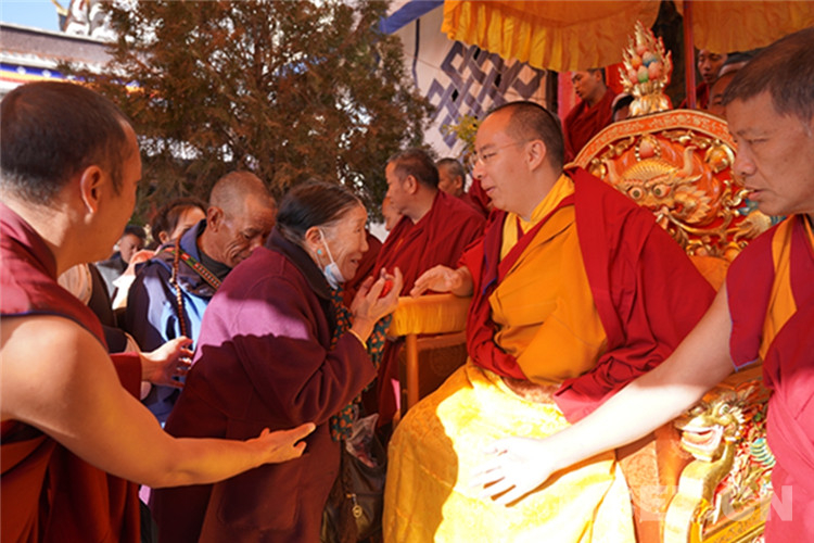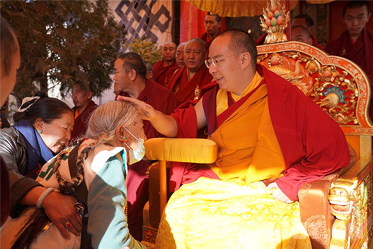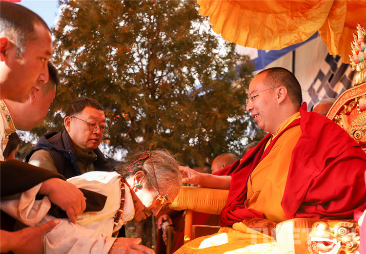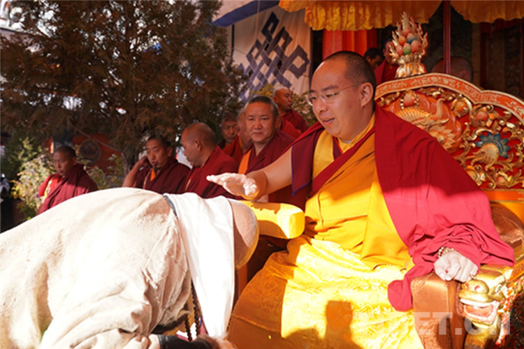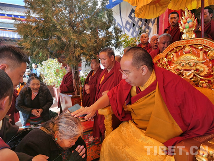 中國西藏網(wǎng)訊 11月13日至14日,全國政協(xié)常委、中國佛教協(xié)會副會長、中國佛協(xié)西藏分會會長班禪額爾德尼?確吉杰布在西藏日喀則市扎什倫布寺多加大院為信教群眾摸頂賜福,這是近年來規(guī)模最大的一次班禪摸頂賜?;顒印D為班禪摸頂賜福 攝影:王淑(中國西藏網(wǎng) 記者/王淑 賈華加)