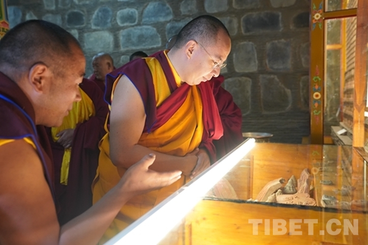在瓊布·阿旺強(qiáng)巴堅贊活佛引領(lǐng)下,班禪依次朝拜主殿懺悔殿、主供佛殿、度母殿、護(hù)法神殿、舊杜康殿,參觀文物陳列室,前往寺廟辯經(jīng)場觀摩僧人辯經(jīng),并就扎西吉培寺“三個意識”教育開展情況和僧人綜合考評機(jī)制有關(guān)情況進(jìn)行調(diào)研。