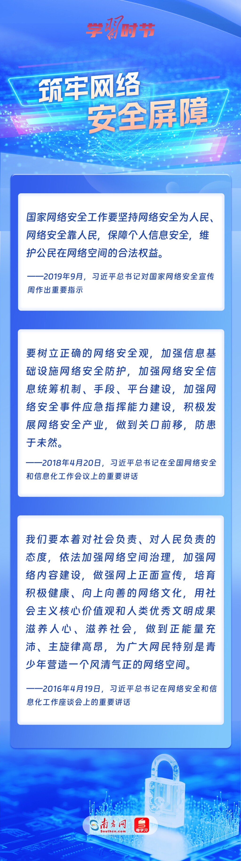 黨的十八大以來(lái),習(xí)近平總書記從信息化發(fā)展大勢(shì)和國(guó)內(nèi)國(guó)際大局出發(fā),就網(wǎng)絡(luò)安全和信息化工作提出一系列具有開創(chuàng)性意義的新理念新思想新戰(zhàn)略,形成了習(xí)近平總書記關(guān)于網(wǎng)絡(luò)強(qiáng)國(guó)的重要思想。其中,有不少生動(dòng)形象的表述,深入人心,發(fā)人深省,讓我們一起學(xué)習(xí)。