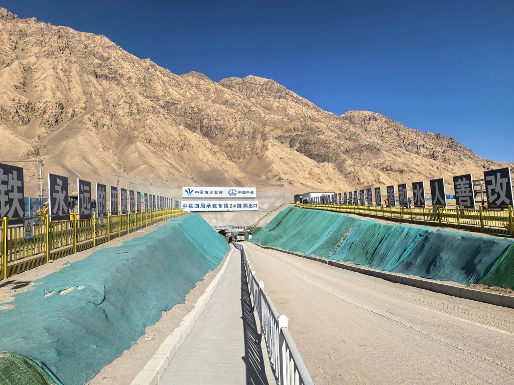 柴達(dá)木盆地水資源配置一期工程?hào)|線2#隧道出口段在進(jìn)行施工作業(yè)。新華社發(fā)