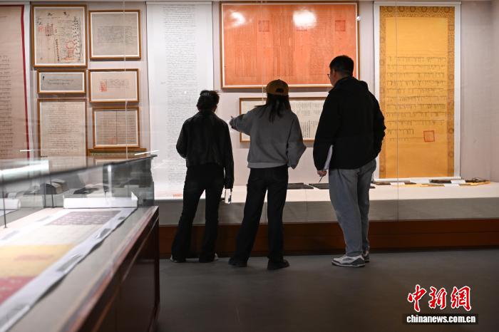 4月28日,記者實(shí)地探訪西藏藏語言文字館,該館是全中國首個(gè)藏語言文字專題展館。展館共設(shè)藏語言文字的起源與演變、藏語言文字的學(xué)習(xí)和使用、藏語言文字的傳承與保護(hù)3大部分10個(gè)板塊,目前館藏珍貴展品3000余件。圖為市民在參觀西藏藏語言文字館。中新社記者 貢嘎來松 攝