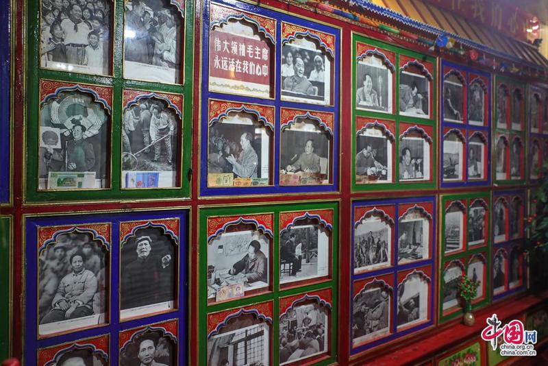 “紅色記憶”展覽室內(nèi)景·毛主席相片墻。中國(guó)網(wǎng)記者鄭偉攝