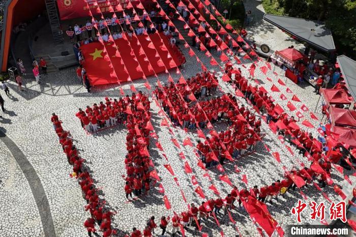 活動(dòng)現(xiàn)場超過300人組合排列數(shù)字“75”,寓意慶祝新中國成立75周年,伴隨著現(xiàn)場升旗儀式的進(jìn)行,大家齊聲高唱國歌,慶祝氣氛熱烈。