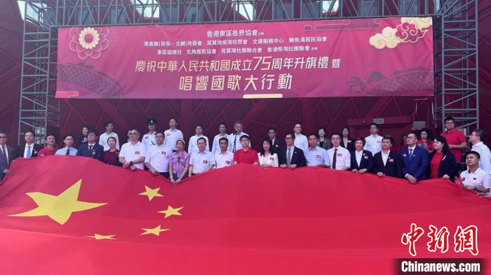 中新網(wǎng)香港10月2日電 香港東區(qū)各界代表10月1日在東區(qū)文化廣場舉辦“升旗禮暨唱響國歌大行動(dòng)”,慶祝中華人民共和國成立75周年。