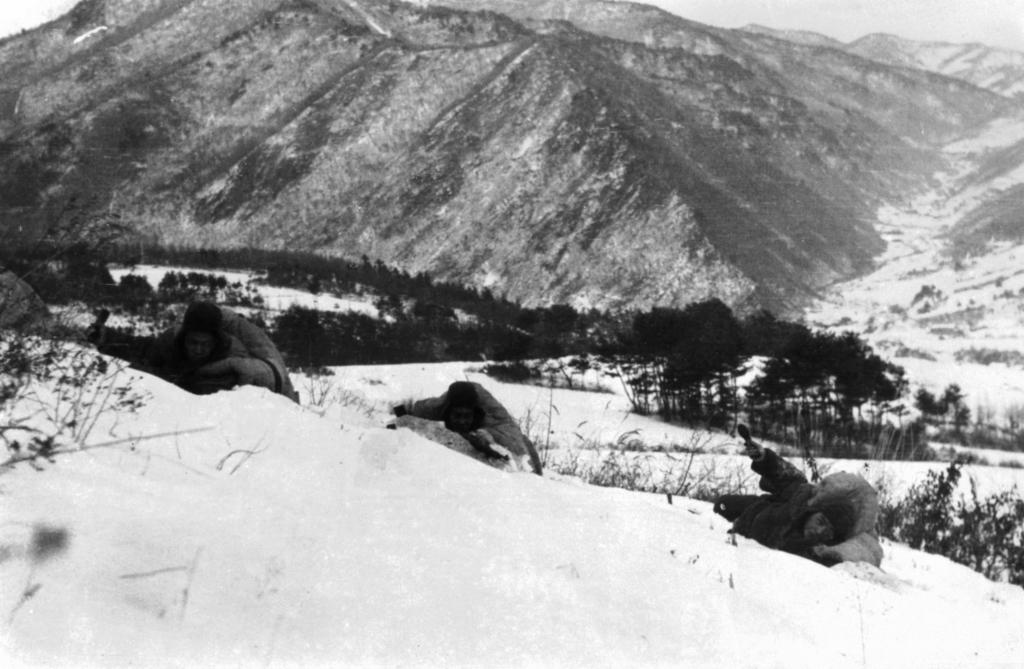 志愿軍第20軍59師175團(tuán)戰(zhàn)士堅(jiān)守死鷹嶺陣地。