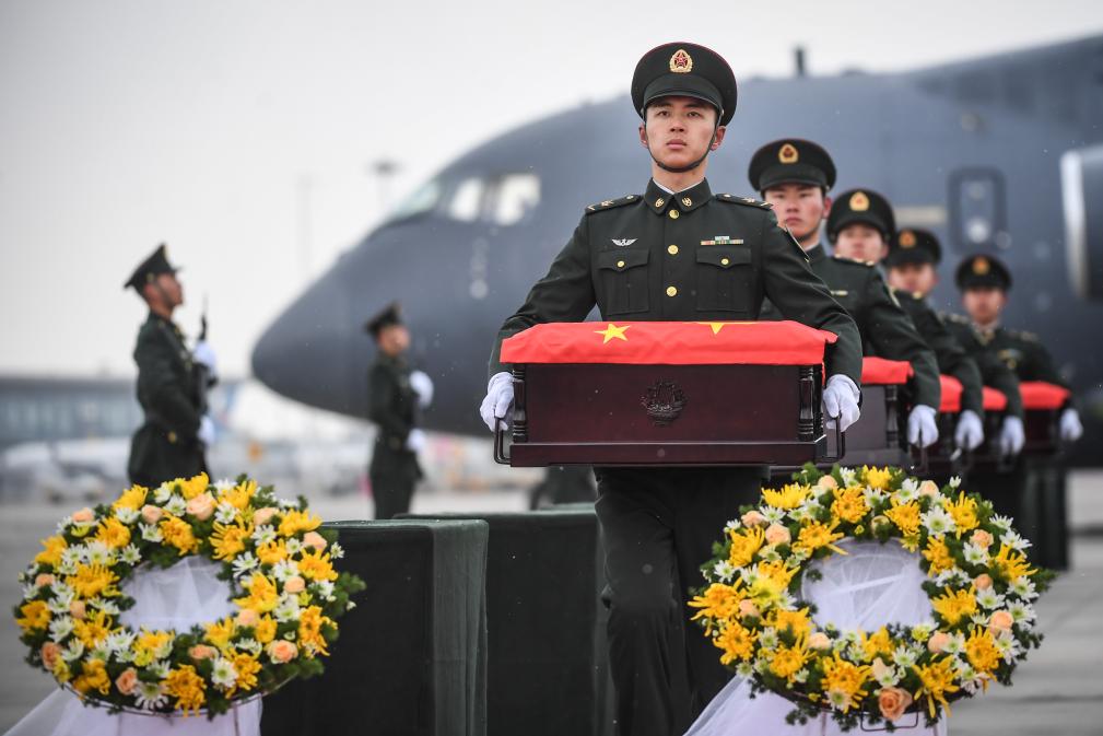 2023年11月23日,第十批在韓中國(guó)人民志愿軍烈士遺骸抵達(dá)沈陽(yáng)桃仙國(guó)際機(jī)場(chǎng)。