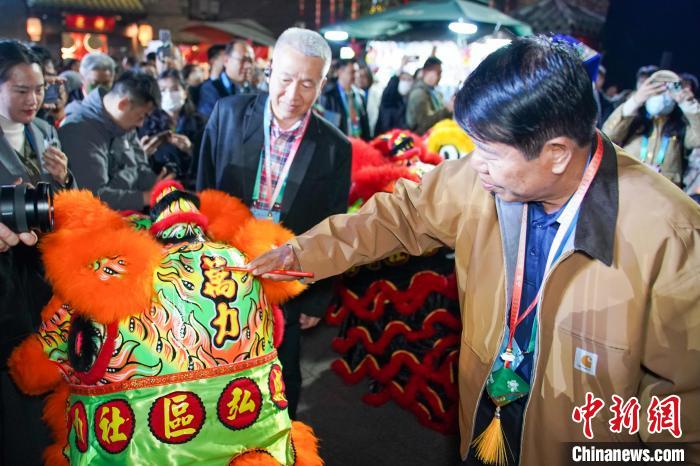 用朱砂為舞獅點睛,象征喚醒獅子,賦予其新生;揭紅紙拓印“?!弊?;穿上戲服體驗邕劇獨特韻味……中國農(nóng)歷春節(jié)臨近,參加“世界市長對話·南寧”活動的外賓們,在廣西南寧歷史文化街區(qū)感受中國新春民俗,探尋年味。