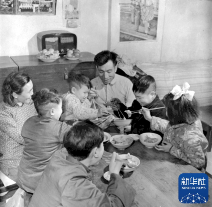 20世紀(jì)60年代初,遼寧鞍鋼老工人于德舉一家在吃年夜飯。為過年準(zhǔn)備一頓豐盛的飯菜是當(dāng)時人們頗費腦筋的事。新華社記者 苗明 攝