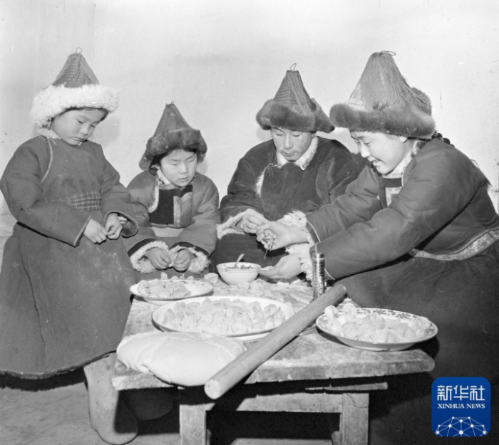 1981年,內(nèi)蒙古呼倫貝爾牧民正在高高興興包餃子過春節(jié)。新華社記者 白斯古郎 攝