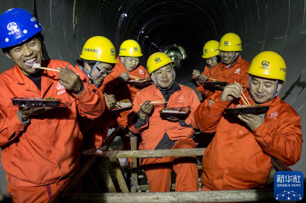 2014年1月30日農(nóng)歷除夕,為確保工程按計劃順利完工,中鐵隧道集團(tuán)承建的北京市南水北調(diào)配套工程東干渠第五標(biāo)段仍在施工,工人們在自己的工作崗位上吃了頓特殊的年夜飯。新華社記者 張宇 攝
