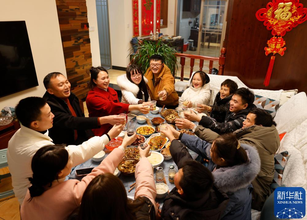 2023年1月21日,貴州省遵義市正安縣一戶居民在家里吃年夜飯。新華社發(fā)(趙永章 攝)