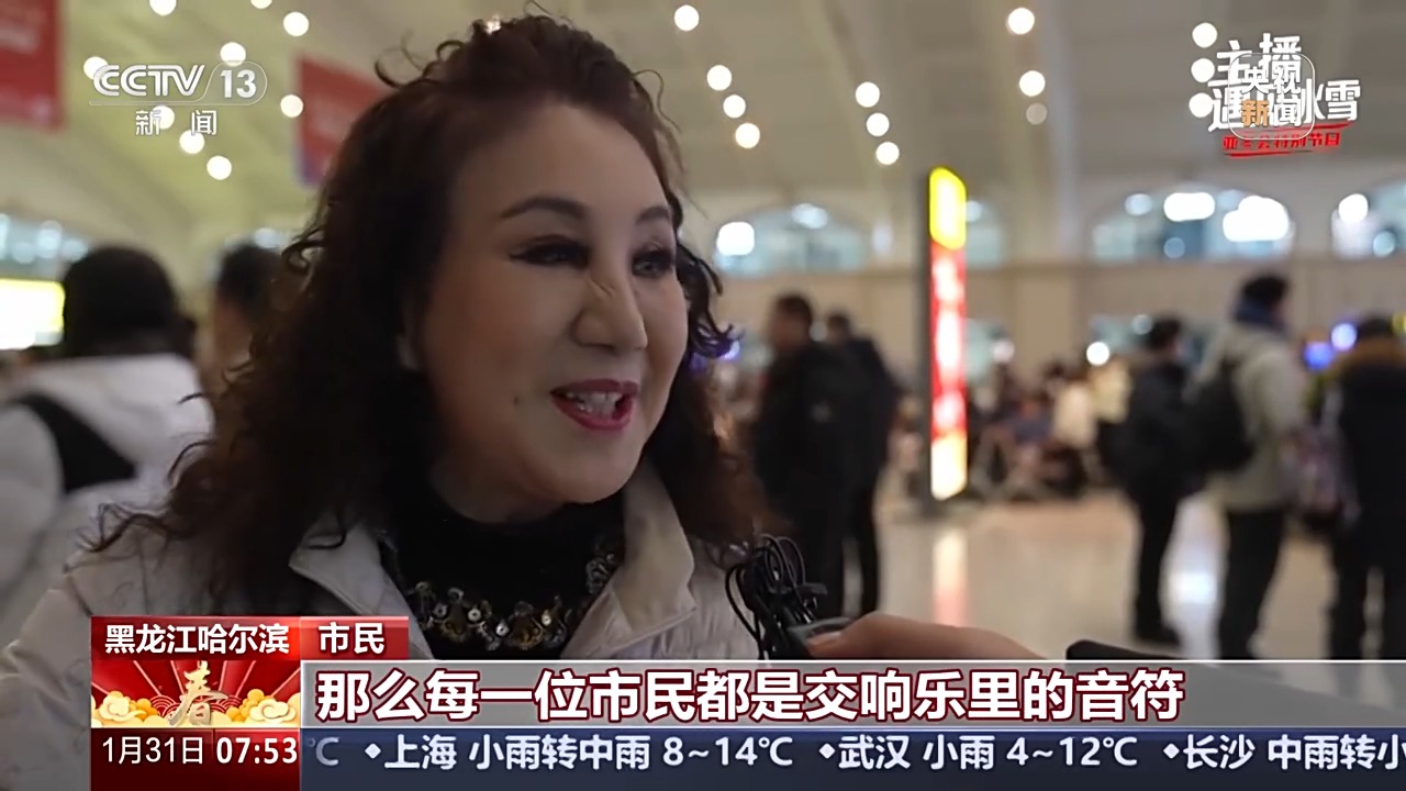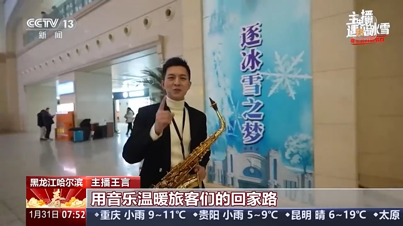 主播 王言:音樂元素在哈爾濱隨處可見,這里是有百年歷史的哈爾濱火車站。在火車站的候車大廳,有一個專門的藝術(shù)舞臺,每年都有這里的專業(yè)樂手和來自音樂院校的學(xué)生們,為大家來進(jìn)行音樂表演,用音樂溫暖旅客們的回家路,今天我也加入他們。