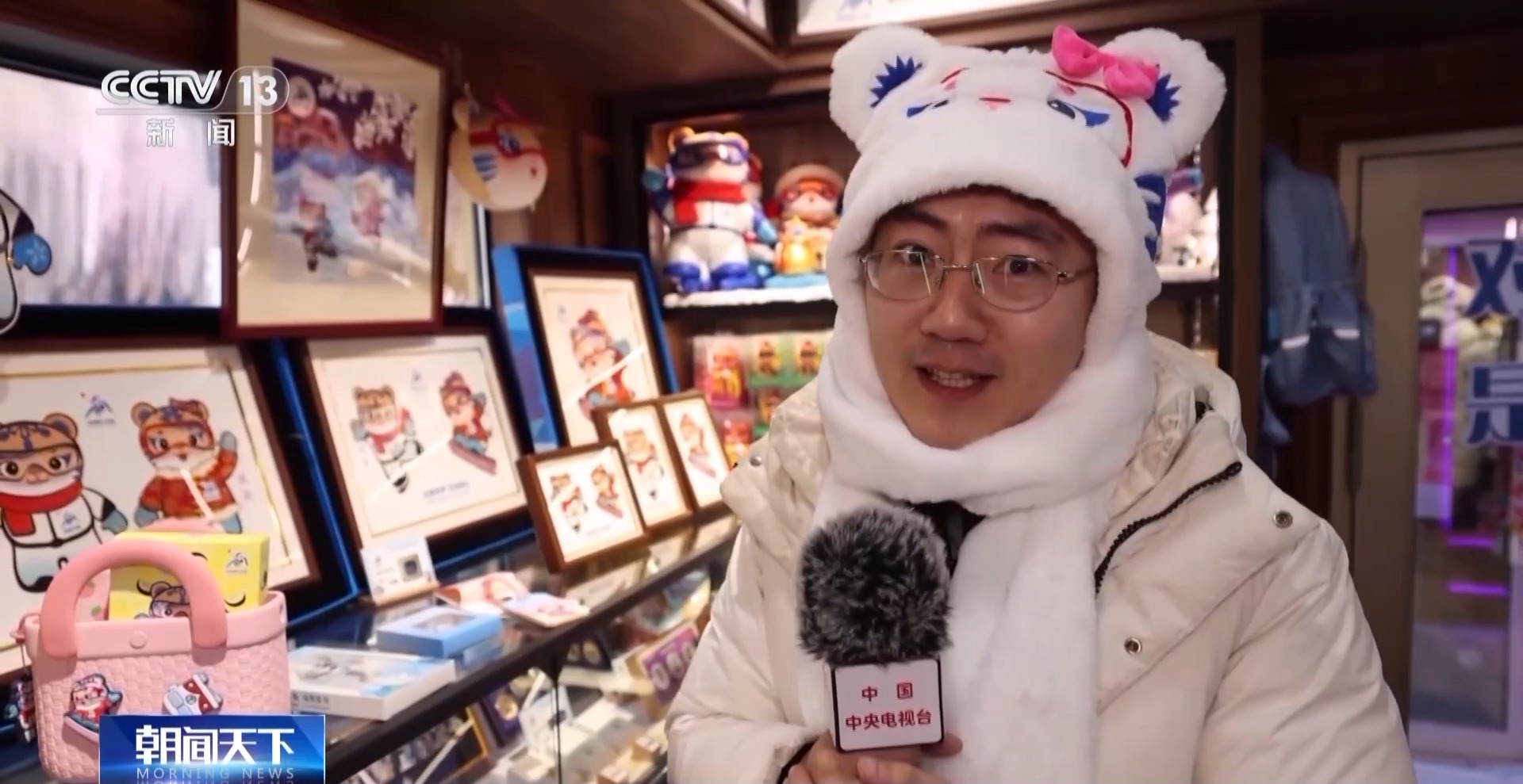 總臺記者 張程:我發(fā)現(xiàn)第九屆亞冬會的文創(chuàng)產(chǎn)品有兩個特點,第一就是完美地嵌入到我們的生活當(dāng)中:比如說我現(xiàn)在頭上戴的這頂妮妮圖案的帽子,采用了石墨烯加熱技術(shù),保證你在戶外也能夠抵御“爾濱”的嚴寒。