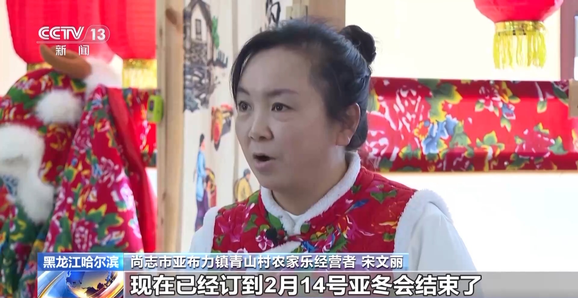 尚志市亞布力鎮(zhèn)青山村農(nóng)家樂經(jīng)營者 宋文麗:天天滿房,現(xiàn)在已經(jīng)訂到2月14日亞冬會結(jié)束了?! ?img alt="" src="./W020250207709259204981.jpg" OLDSRC="W020250207709259204981.jpg" />