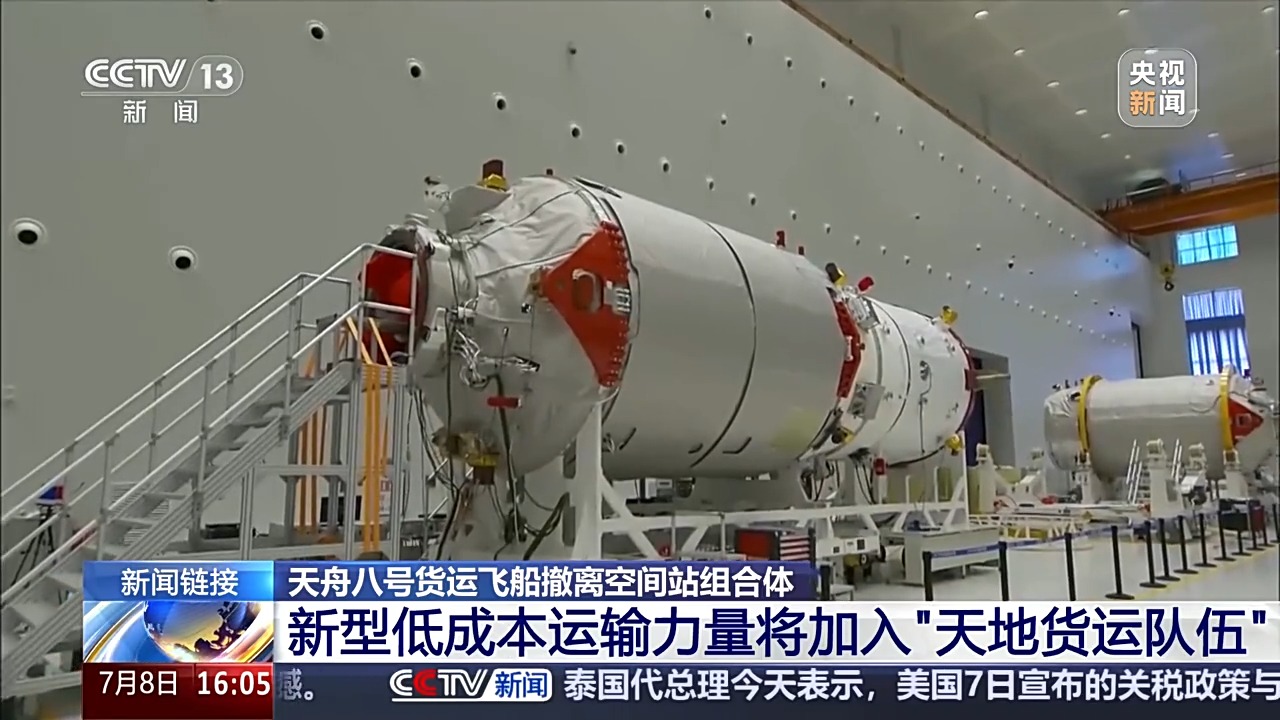 北京時間2025年7月8日15時9分,天舟八號貨運飛船順利撤離空間站組合體,轉(zhuǎn)入獨立飛行階段,將于近期擇機受控再入大氣層。天舟八號貨運飛船于2024年11月15日在文昌航天發(fā)射場發(fā)射入軌,共計在軌運行近八個月,為神舟十九號、二十號乘組提供了物資保障。通過短片,一起回顧天舟八號的任務(wù)過程。