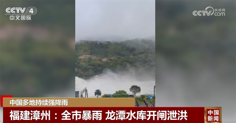 福建漳州:全市暴雨 龍?zhí)端畮?kù)開(kāi)閘泄洪