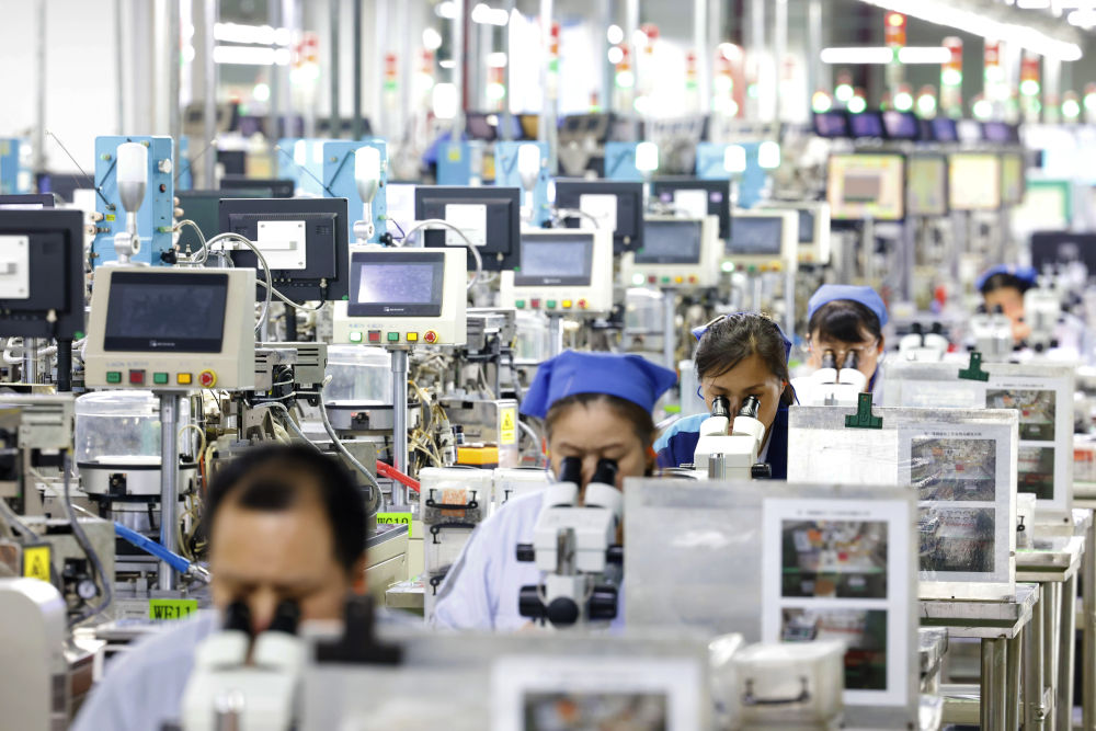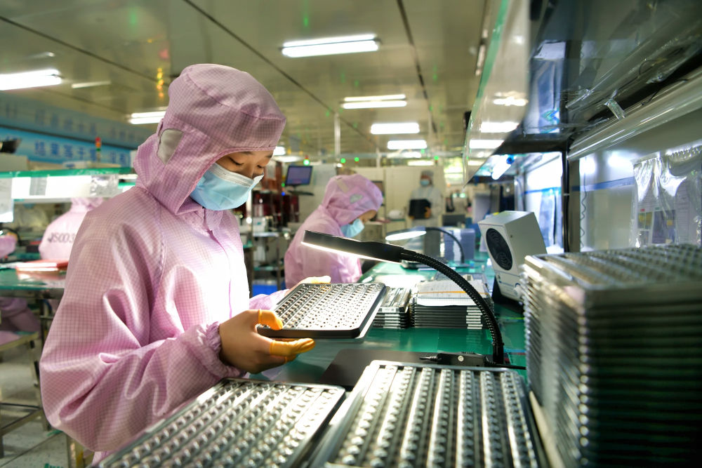 6月24日,在江蘇宿遷泗洪經(jīng)濟開發(fā)區(qū)慶邦電子元器件(泗洪)有限公司車間內(nèi),工人加緊趕制出口的電子訂單產(chǎn)品。新華社發(fā)(許昌亮攝)
