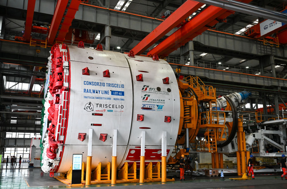 這是6月18日在天津自由貿(mào)易試驗區(qū)天津港東疆片區(qū)的中鐵工程裝備集團(天津)有限公司拍攝的即將出口意大利的盾構(gòu)機。新華社記者 孫凡越 攝