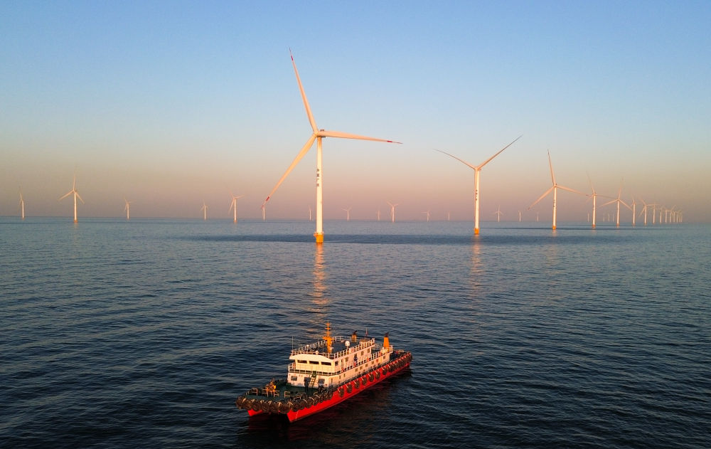 這是位于山東省萊州市海域的海上風電項目(2025年1月7日攝,無人機照片)。新華社記者 徐速繪 攝