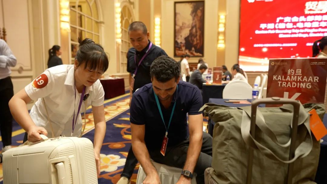 最早,當(dāng)?shù)刈龅氖遣剂喟?,用服裝廠的邊角料拼的。如今,產(chǎn)品已從最初的手提包、布袋,升級為拉桿箱、背包等。有的帶水杯架,甚至還能自己稱重、有充電USB接口……