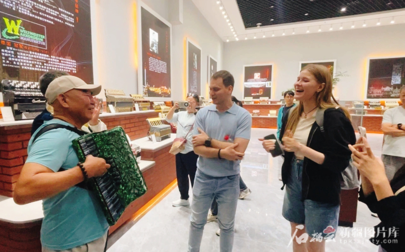 在手風(fēng)琴文化展示廳,面對來自俄羅斯、德國等10多個國家的1000余架手風(fēng)琴,留學(xué)生們紛紛用鏡頭記錄。當(dāng)了解到塔城已舉辦四屆國際手風(fēng)琴文化藝術(shù)節(jié),享有“中國手風(fēng)琴之城”的美譽,并創(chuàng)造了世界最大規(guī)模手風(fēng)琴合奏吉尼斯世界紀(jì)錄時,現(xiàn)場贊嘆聲不斷。