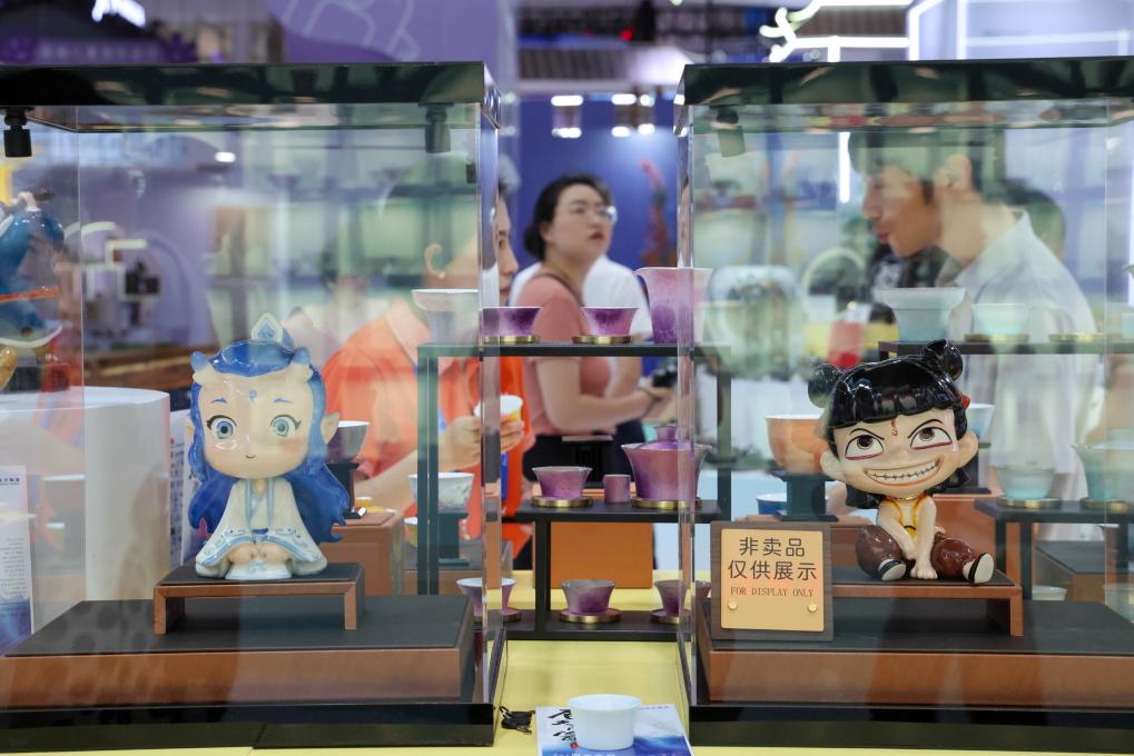 深圳,5月22日,文博會上展示的電影《哪吒》周邊產(chǎn)品。新華社記者 梁旭 攝