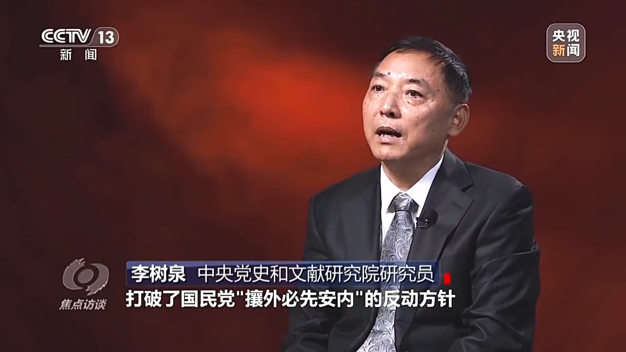 中央黨史和文獻(xiàn)研究院研究員 李樹泉:首先在政治上打破了國民黨“攘外必先安內(nèi)”的反動(dòng)方針,形成了“地?zé)o分南北,人無分老幼”全國抗戰(zhàn)的局面,在軍事上就形成了敵后戰(zhàn)場(chǎng)和正面戰(zhàn)場(chǎng)的戰(zhàn)略配合,這樣就陷日本侵略者于人民戰(zhàn)爭的汪洋大海。