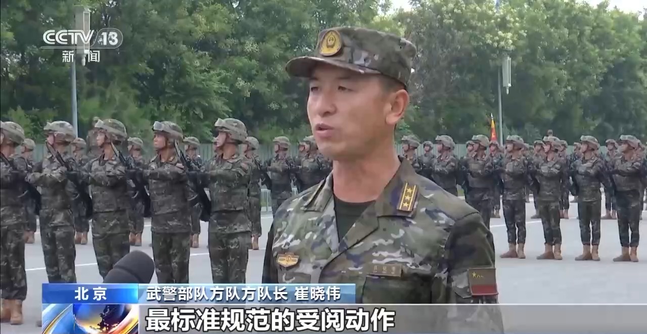 武警部隊方隊方隊長 崔曉偉:目前我們已經(jīng)進入最后的沖刺階段,在紀(jì)念抗戰(zhàn)勝利80周年紀(jì)念日當(dāng)天,以最昂揚的精神狀態(tài)、最標(biāo)準(zhǔn)規(guī)范的受閱動作,光榮地接受黨和人民檢閱,接受習(xí)主席檢閱。