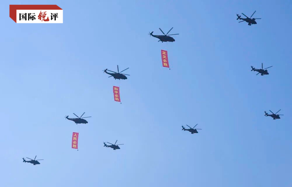 閱兵儀式上,一個細(xì)節(jié)引人關(guān)注:3架直升機分別懸掛“正義必勝”“和平必勝”“人民必勝”的條幅飛過天安門廣場。這“三個必勝”既是歷史啟示的偉大真理,也是對當(dāng)下和未來的重要啟迪。