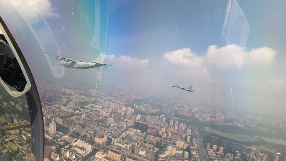 ↑這是特種機(jī)梯隊(duì)從北京城區(qū)上空飛過(guò)。