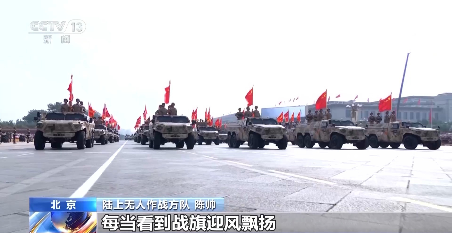 陸上無人作戰(zhàn)方隊 張雨風(fēng):如今,我們擁有了先進(jìn)的武器裝備,更要牢記中華民族一路走來的艱辛,牢記人民軍隊使命初心,弘揚好抗戰(zhàn)偉大精神,把手中先進(jìn)武器裝備轉(zhuǎn)化為部隊實際作戰(zhàn)能力,聚力打贏實現(xiàn)建軍一百年奮斗目標(biāo)攻堅戰(zhàn)。