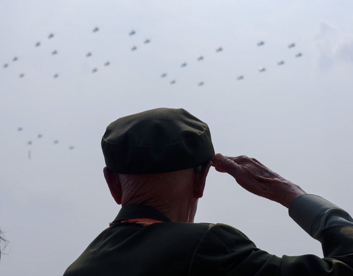2025年9月3日,紀念中國人民抗日戰(zhàn)爭暨世界反法西斯戰(zhàn)爭勝利80周年大會在北京隆重舉行。這是抗戰(zhàn)老戰(zhàn)士在天安門城樓上敬禮。新華社記者 才揚 攝