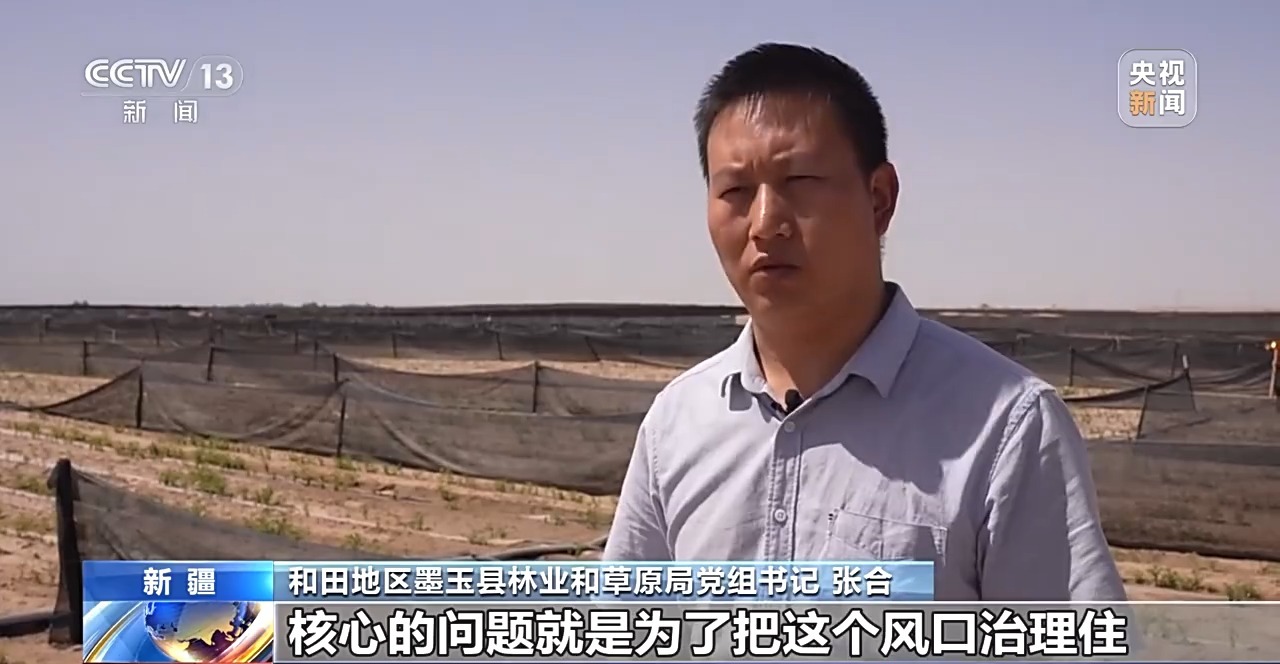 和田地區(qū)墨玉縣林業(yè)和草原局黨組書記 張合:我們選擇這塊區(qū)域鎖邊加厚,核心的問題就是為了把這個風(fēng)口治理住,減少風(fēng)沙對綠洲內(nèi)部的侵蝕。