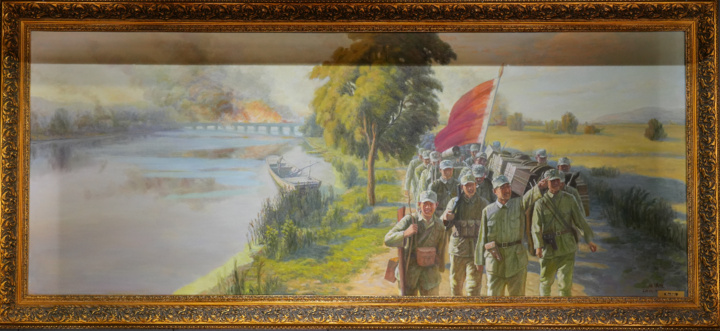 展示運(yùn)河支隊(duì)爆破運(yùn)河大橋的油畫(huà)《凱旋》