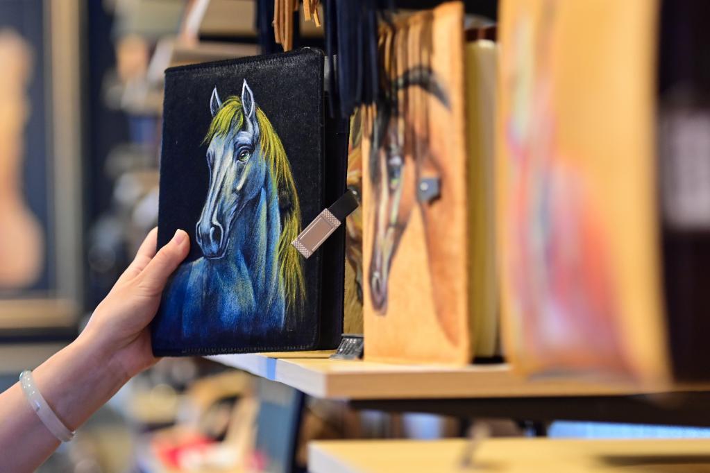 “伊犁是‘天馬之鄉(xiāng)’,我們?cè)谄っ惑w的馬皮上進(jìn)行手工繪畫,每幅圖案都是獨(dú)一無二的,讓非遺與旅游深度融合?!钡觊L茹柯耶·艾散介紹,店鋪還開發(fā)出馬毛筆記本、首飾等文創(chuàng)衍生品,深受年輕人喜愛。