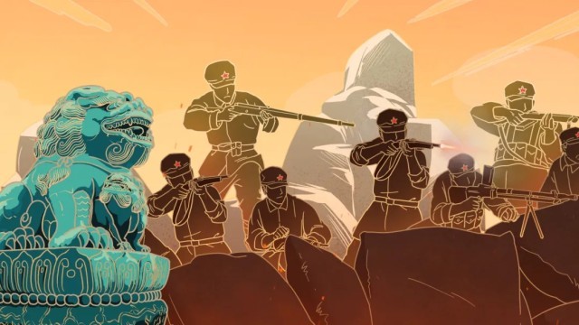 一曲義勇軍冒著敵人炮火前行