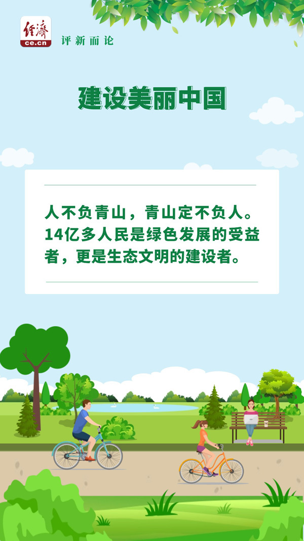 人不負青山,青山定不負人。14億多人民是綠色發(fā)展的受益者,更是生態(tài)文明的建設者。都說國很大,其實一個家。讓家園更美麗,期待每個人都能出一份力。