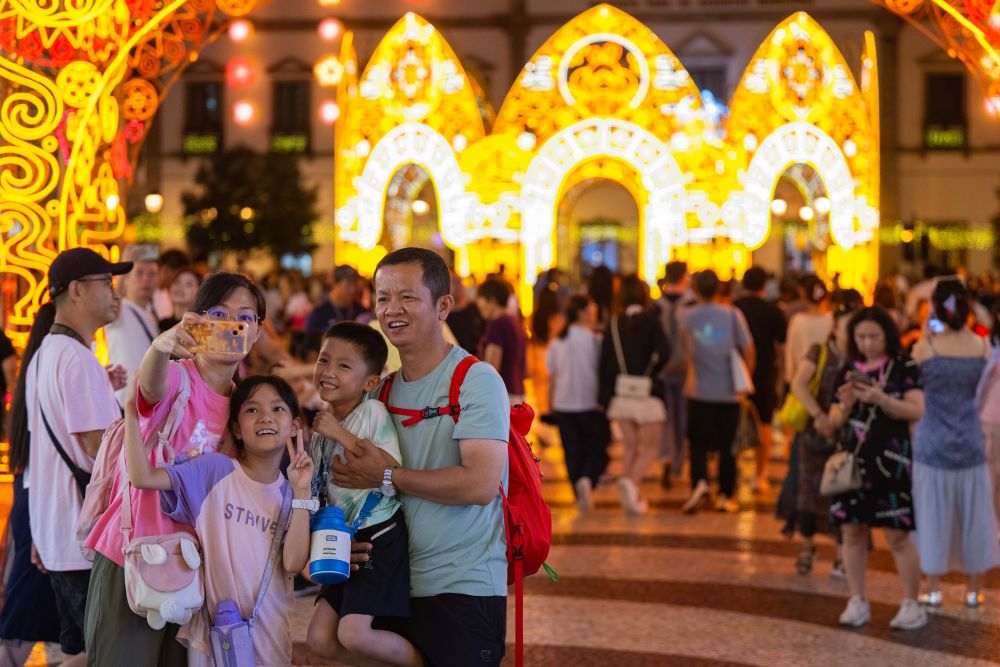 除了“硬核”的旅游景點(diǎn),還有連串精彩活動(dòng)。為迎接8天連假,特區(qū)政府文旅部門的安排令人目不暇接:哪吒廟主題光影秀讓人們沉浸式體驗(yàn)國(guó)家級(jí)非物質(zhì)文化遺產(chǎn)——澳門哪吒信俗的魅力;“海上游歷·海神的傳說(shuō)”拔錨起航,帶游人一覽南海小城的海上風(fēng)光;“十月初五街節(jié)”則帶領(lǐng)旅客走進(jìn)街巷,了解澳門故事和社區(qū)特色……
