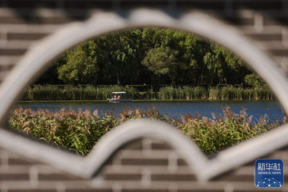 ↑ 10月6日,游客在長(zhǎng)春市南湖公園乘船游玩。新華社記者 許暢 攝