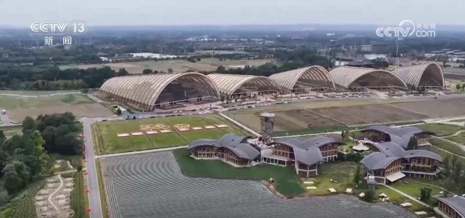 在四川成都新津天府農(nóng)博園,巨幅稻田畫大熊貓成為大地畫卷的新主題。收割后的稻谷快速進入糧倉之后,地里的秸稈也沒浪費,通過文創(chuàng)師的一雙巧手與現(xiàn)代工藝的結(jié)合,小小的稻草和秸稈迎來了華麗“變身”:“川劇變臉”“哪吒腦?!钡葎?chuàng)意造型,在東部新區(qū)世博園打造出一個“巨型稻草人王國”。