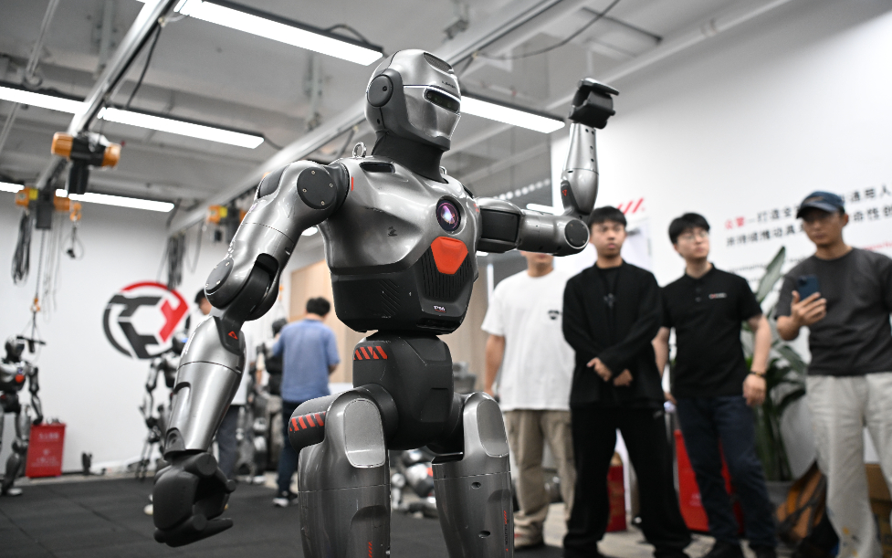6月25日,在深圳市眾擎機器人科技有限公司,人形機器人揮舞手臂致意。新華社記者 鄧華 攝