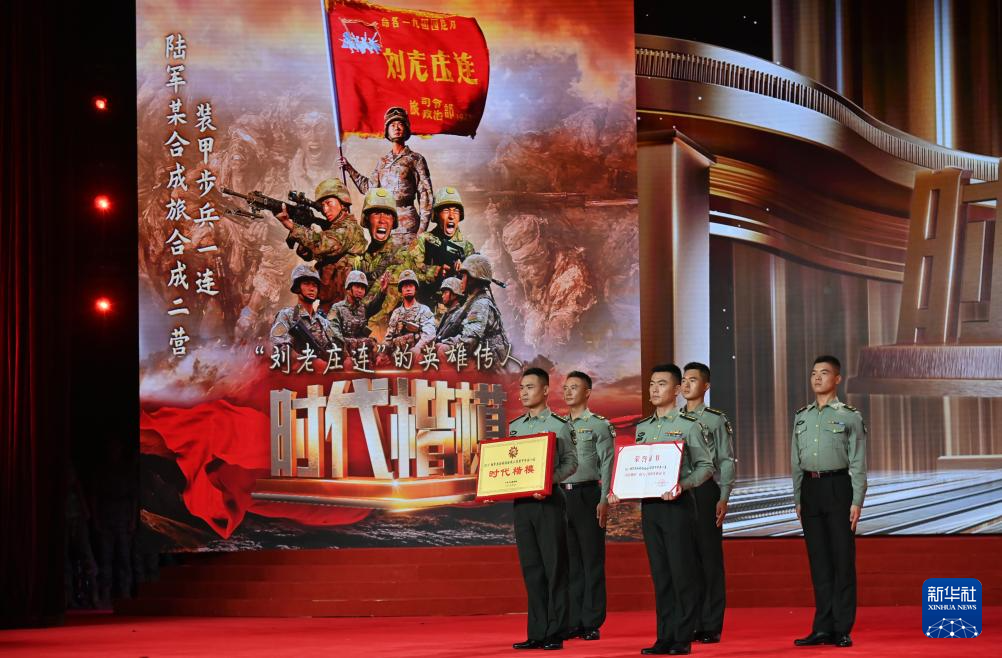 中央宣傳部在授予“時(shí)代楷模”稱號(hào)的決定中指出,“劉老莊連”是有靈魂、有本事、有血性、有品德的新時(shí)代革命軍人的優(yōu)秀代表,他們的先進(jìn)事跡充分彰顯了人民軍隊(duì)堅(jiān)定維護(hù)核心、堅(jiān)決聽黨指揮的政治本色和血脈傳承,生動(dòng)詮釋了全軍官兵不畏強(qiáng)敵、敢打必勝的精神品質(zhì),集中展現(xiàn)了新時(shí)代人民軍隊(duì)的好樣子、革命軍人的好樣子。希望廣大黨員干部特別是部隊(duì)官兵以“時(shí)代楷?!睘榘駱樱钊雽W(xué)習(xí)貫徹習(xí)近平新時(shí)代中國特色社會(huì)主義思想,深入貫徹習(xí)近平強(qiáng)軍思想,深刻領(lǐng)悟“兩個(gè)確立”的決定性意義,增強(qiáng)“四個(gè)意識(shí)”、堅(jiān)定“四個(gè)自信”、做到“兩個(gè)維護(hù)”,貫徹軍委主席負(fù)責(zé)制,傳承和弘揚(yáng)偉大抗戰(zhàn)精神,堅(jiān)定理想信念、厚植家國情懷,為如期實(shí)現(xiàn)建軍一百年奮斗目標(biāo)、加快把人民軍隊(duì)建成世界一流軍隊(duì),為以中國式現(xiàn)代化全面推進(jìn)強(qiáng)國建設(shè)、民族復(fù)興偉業(yè)而團(tuán)結(jié)奮斗。