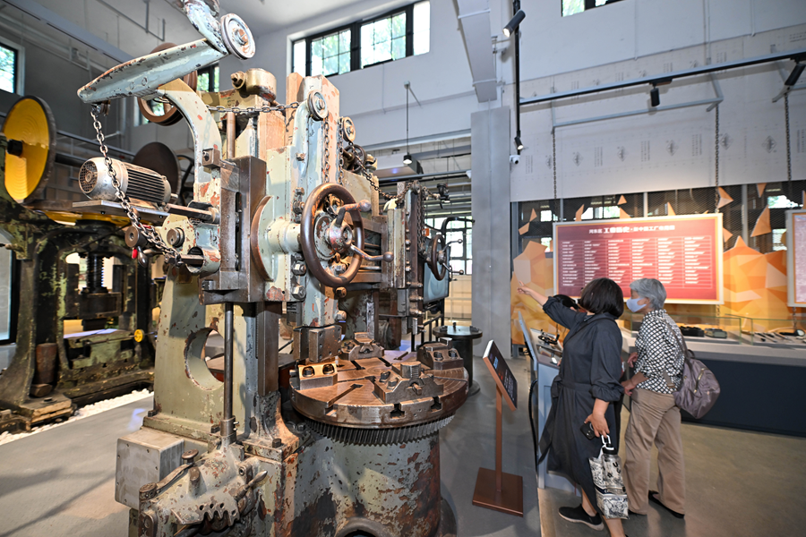 2025年5月18日,游客在天津機床工業(yè)博物館內(nèi)參觀機床設備。新華社記者 孫凡越 攝