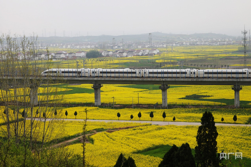 鋼鐵長龍?jiān)诨洊|大地上畫出優(yōu)美弧線,它勾勒出一條通向均衡發(fā)展、文化自信、民生幸福的未來之路。軌道延伸之處,山河煥然一新,城鄉(xiāng)共舞,這就是中國鐵路所承載的,最磅礴、最溫暖的時(shí)代之美。