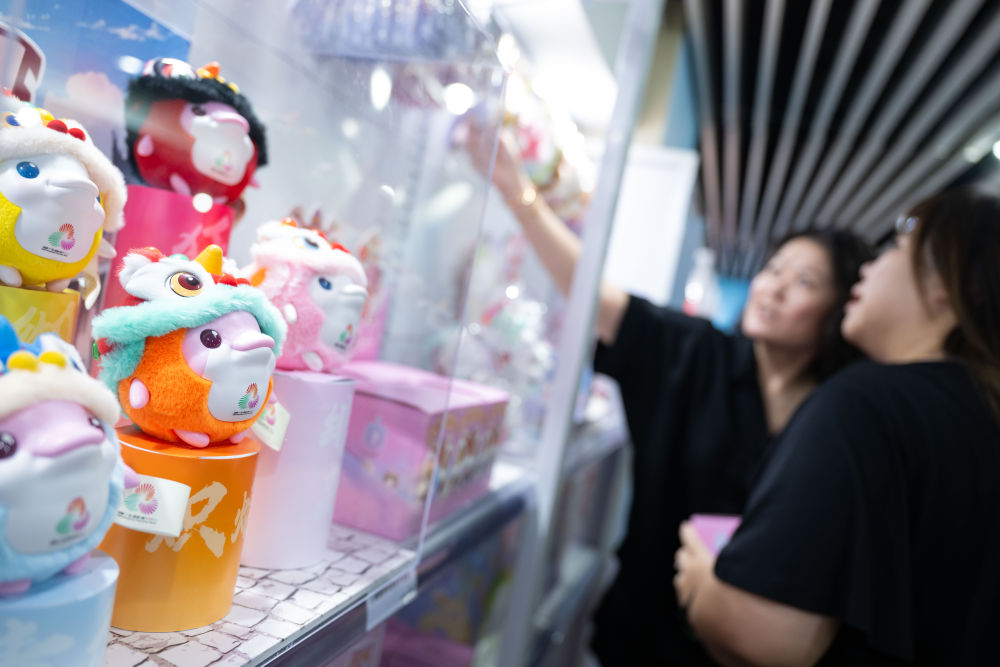 8月1日,市民在十五運(yùn)會(huì)和殘?zhí)貖W會(huì)澳門(mén)賽區(qū)官方特許商品零售店選購(gòu)。新華社發(fā)(張金加攝)