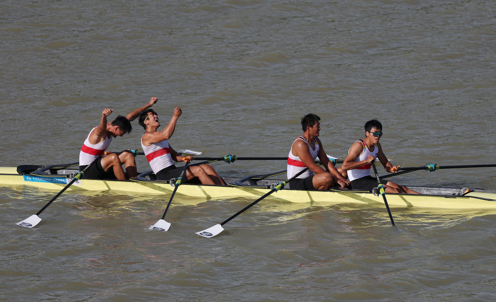 賽艇男子四人雙槳決賽中,由張自毫、臧哈、張漢文、蔡鵬鵬組成的江蘇隊發(fā)揮出色,以4分12秒24的成績率先沖線,戰(zhàn)勝由旺加、母曉龍、劉百順、張全組成的廣東隊。后者是代表中國隊參加今年上海賽艇世錦賽男子四人雙槳項目的原班組合。