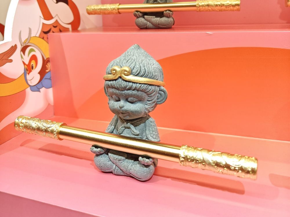 朱炳仁·銅開發(fā)的國(guó)潮款產(chǎn)品“悟空如意金箍筆”。新華社記者張璇 攝