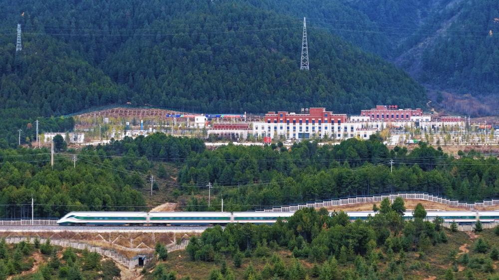 11月21日,一列動(dòng)車組列車駛過云南迪慶藏族自治州小中甸站(無(wú)人機(jī)照片)。