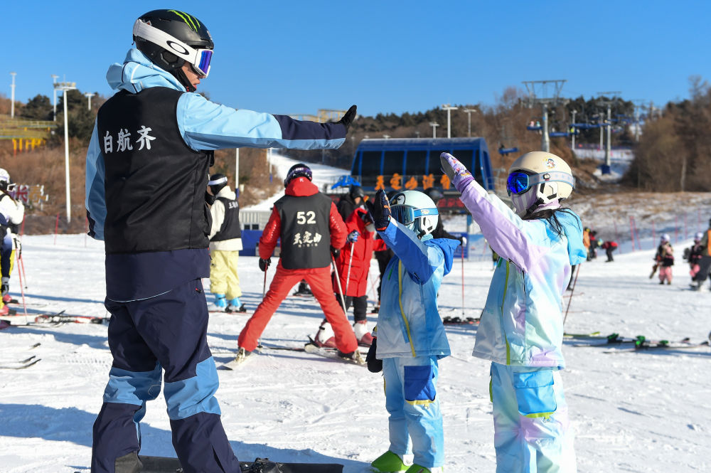 12月3日,在長春市天定山滑雪場,學(xué)生們跟隨教練學(xué)習(xí)滑雪。新華社記者 張楠 攝